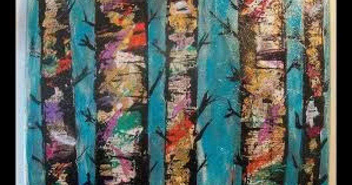 Create a colorful work of art with us this month. Using tape, paint, and old book pages, we'll create a beautiful scene of birch trees on a pretty background.